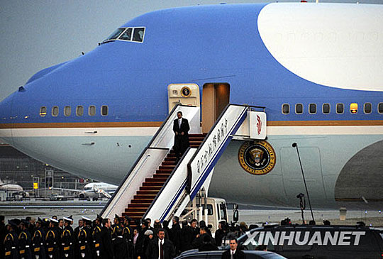 圖:美國總統(tǒng)奧巴馬乘“空軍一號”抵達(dá)上海