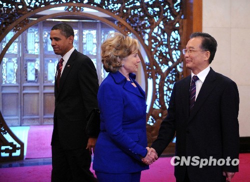 圖:溫家寶總理會見美國總統(tǒng)奧巴馬一行