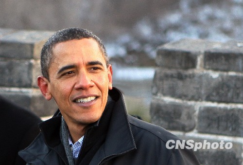 圖:奧巴馬冒嚴(yán)寒登八達(dá)嶺長城