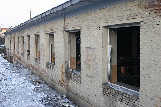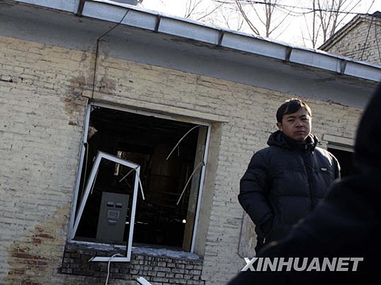 事故礦井附近的礦燈房窗戶被震壞