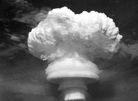 氫彈爆炸時,作為引爆裝置的原子彈首先爆炸,產(chǎn)生數(shù)千萬度高溫,促使氘氚等輕核急劇聚變,放出巨大能量,形成更猛烈的爆炸。