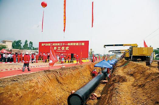 “西氣東輸”管道工程,采取干支結合、配套建設方式進行,管道輸氣規(guī)模設計為每年120億立方米。項目第一期投資預測為1200億元,上游氣田開發(fā)、主干管道鋪設和城市管網總投資超過3000億元。工程在2000-2001年內先后動工,將于2007年全部建成。是中國目前距離最長、管徑最大、投資最多、輸氣量最大、施工條件最復雜的天然氣管道。 實施西氣東輸工程,有利于促進我國能源結構和產業(yè)結構調整,帶動東、西部地區(qū)經濟共同發(fā)展,改善長江三角洲及管道沿線地區(qū)人民生活質量,有效治理大氣污染。這一項目的實施,為西部大開發(fā)、將西部地區(qū)的資源優(yōu)勢變?yōu)榻洕鷥?yōu)勢創(chuàng)造了條件,對推動和加快新疆及西部地區(qū)的經濟發(fā)展具有重大的戰(zhàn)略意義。