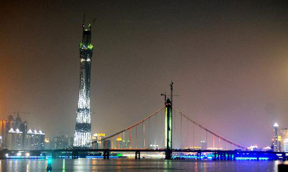 廣州電視觀光塔(又稱廣州塔、廣州新電視塔),建于廣州市海珠區(qū)赤崗塔附近地面,距離珠江南岸125米,與海心沙島及廣州新電視塔夜景珠江新城隔江相望。是一座以觀光旅游為主,具有廣播電視發(fā)射、文化娛樂和城市窗口功能的大型城市基礎(chǔ)設(shè)施,將為2010年在廣州召開的第十六屆亞洲運(yùn)動會提供轉(zhuǎn)播服務(wù)。該塔仍然在建,由上海建工集團(tuán)負(fù)責(zé)施工,預(yù)計2009年9月竣工。竣工后的廣州電視觀光塔整體高度達(dá)到610米,將取代加拿大的西恩塔成為世界第一高塔,也將成為廣州的新地標(biāo)。其中塔身主體454米,天線桅桿156米。