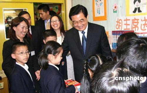 胡錦濤在日本橫濱山手中華學(xué)校看望師生