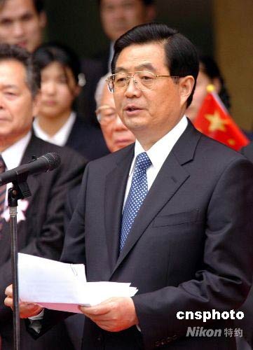 圖:胡錦濤在橫濱中華山手學(xué)校發(fā)表重要講話