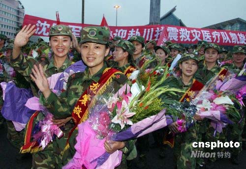 圖:沈陽軍區(qū)抗震救災(zāi)醫(yī)療隊(duì)返沈