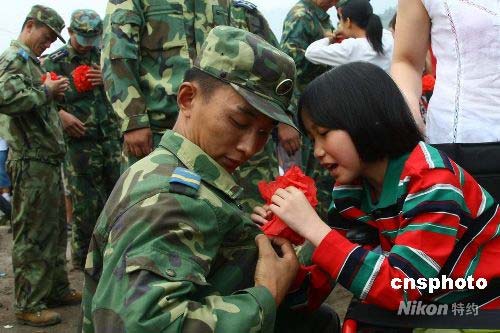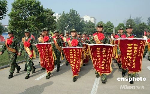 圖:濟(jì)南軍區(qū)駐許昌某部從抗震前線凱旋