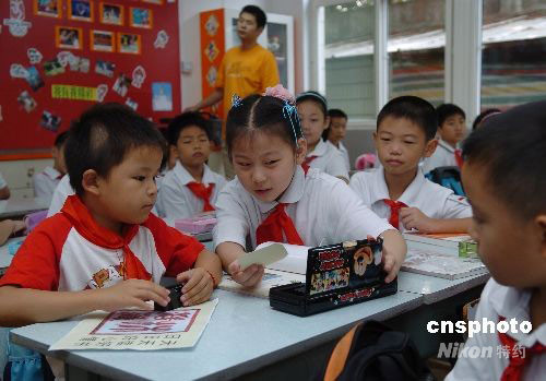 圖:北川災(zāi)區(qū)少年在某國際學(xué)校感受愛心