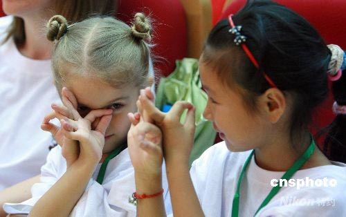 地震災(zāi)區(qū)兒童與外國兒童歡聚"心連心夏令營"