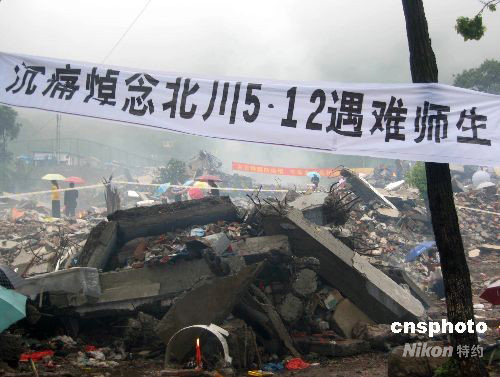 圖:北川民眾地震百日祭奠親人