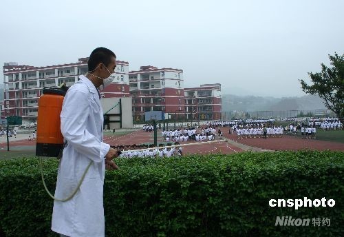 圖:四川對地震災(zāi)區(qū)學(xué)校進(jìn)行全面消毒