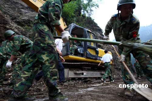 圖:武警工程兵冒險(xiǎn)搶修"大熊貓生命之路"