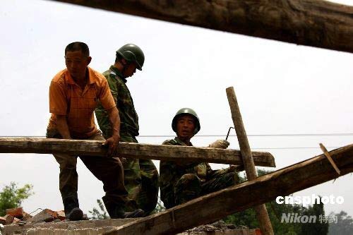 圖:中國空降兵四川震區(qū)幫民眾重建家園