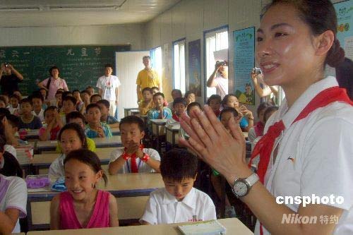圖:李寧、劉璇等奧運(yùn)冠軍慰問災(zāi)區(qū)兒童