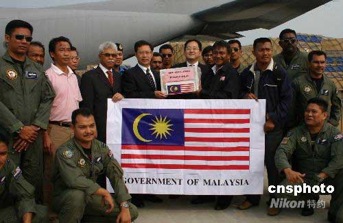 圖:馬來西亞首批救援物資抵成都