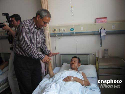 圖:四川傷員感恩離湘 向毛澤東銅像鞠躬