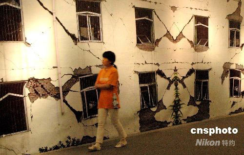圖:四川都江堰魚嘴分水堤震后出現裂縫