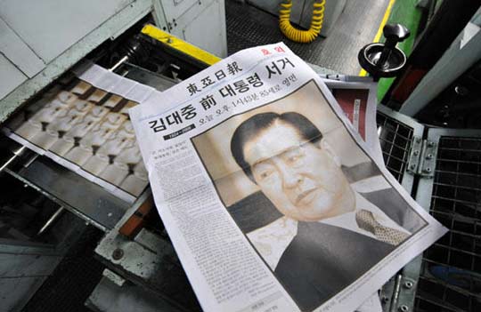 圖:韓國(guó)媒體關(guān)注金大中逝世消息