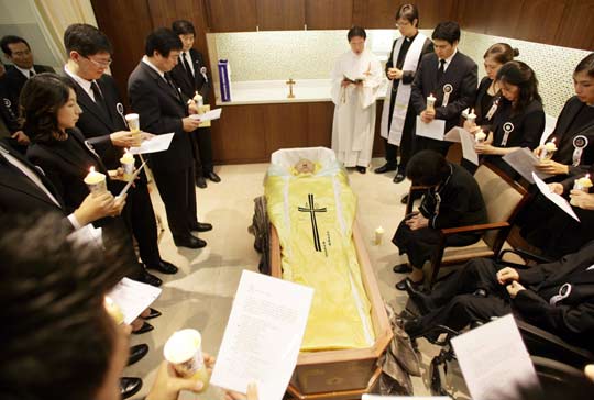 圖:韓國(guó)前總統(tǒng)金大中入殮儀式舉行