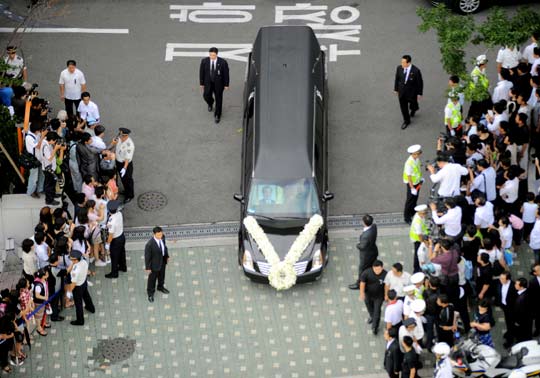 圖:韓國(guó)前總統(tǒng)金大中靈柩運(yùn)往國(guó)會(huì)靈堂