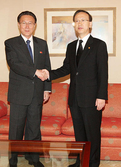 圖:韓國(guó)總統(tǒng)李明博會(huì)見(jiàn)朝鮮吊唁團(tuán)