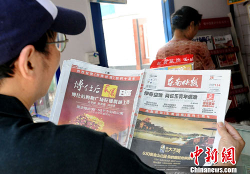 福州市民關(guān)注伊春客機墜機事故相關(guān)報道