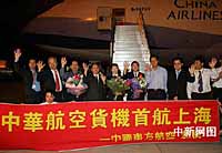 兩岸首班專案貨運(yùn)包機(jī)——臺(tái)灣“中華航空公司”CI六九○一航班于二00六年七月二十日凌晨零時(shí)三十三分飛抵上海浦東機(jī)場(chǎng)。該首航貨機(jī)于十九日晚間在臺(tái)灣桃園機(jī)場(chǎng)起飛,歷經(jīng)二個(gè)半小時(shí)航程,抵達(dá)上海,機(jī)型采用波音七四七—四○○型全貨機(jī)。該專案貨機(jī)的航線,與此前兩岸春節(jié)客運(yùn)包機(jī)的航線相一致,由于仍需繞道飛經(jīng)香港航管區(qū)上空,因此尚非真正意義上的兩岸直航。據(jù)了解,本次專案貨運(yùn)包機(jī)搭載的是在滬辦廠的臺(tái)商為擴(kuò)大產(chǎn)能而托運(yùn)的機(jī)械設(shè)備和相關(guān)器材。業(yè)內(nèi)人士分析,兩岸貨運(yùn)包機(jī)的實(shí)現(xiàn),一定程度上能夠滿足臺(tái)商特別是高科技廠商在大陸投資的實(shí)際需求,有利于提升這些企業(yè)在國(guó)際市場(chǎng)上的競(jìng)爭(zhēng)力。與此同時(shí),這也是兩岸空中通航在原有基礎(chǔ)上又邁出的新一步。