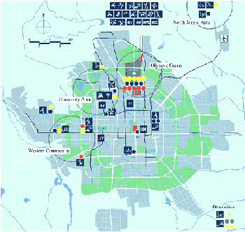 可供16000名運動員、教練員及隨行人員居住,臨近主要比賽場館。 奧運村分為居住區(qū)和國際區(qū),環(huán)境優(yōu)美,舒適方便,安靜安全。 記者村:占地30公頃,建筑面積約40萬平方米,記者到達(dá)公園內(nèi)的比賽場館,時間不超過6分鐘。 |