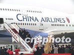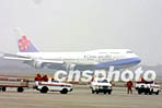 載有春節(jié)返鄉(xiāng)探親臺商及其眷屬"華航"包機飛離浦東機場