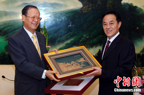 7月28日傍晚,中國(guó)最高人民法院副院長(zhǎng)、中國(guó)法學(xué)會(huì)審判理論研究會(huì)副會(huì)長(zhǎng)、二級(jí)大法官奚曉明先生(右)與海峽兩岸法學(xué)交流協(xié)會(huì)(臺(tái)灣)理事長(zhǎng)廖正豪(左)先生互換禮物。當(dāng)日中國(guó)最高人民法院副院長(zhǎng)奚曉明在福州福建會(huì)堂會(huì)見來自海峽兩岸的近二百名知名法學(xué)家、司法實(shí)務(wù)界人士,其中來自臺(tái)灣29名法學(xué)及司法嘉賓。海峽兩岸司法實(shí)務(wù)研討會(huì)即將在福州舉行。攝影:張麗君