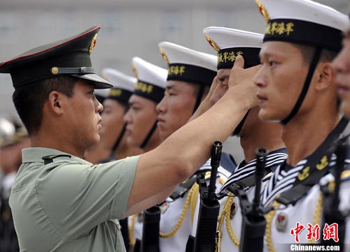 中國國防部9日宣布,應(yīng)墨西哥國防部邀請,由解放軍北京衛(wèi)戍區(qū)儀仗大隊(duì)選派36人組成的中國人民解放軍三軍儀仗方隊(duì),今日從上海啟程赴墨西哥參加墨獨(dú)立200周年慶典閱兵。圖為近日中國人民解放軍陸?杖妰x仗隊(duì)?wèi)?zhàn)士在駐地訓(xùn)練。中新社記者 劉震 攝