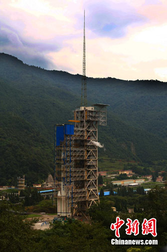 中國(guó)第二顆繞月探測(cè)衛(wèi)星———“嫦娥二號(hào)”將于2010年10月1日18時(shí)59分57秒在西昌衛(wèi)星發(fā)射中心發(fā)射升空。圖為當(dāng)日18時(shí)發(fā)射場(chǎng)一切工作就緒,各要素嚴(yán)陣以待。中新社記者 宋吉河 攝