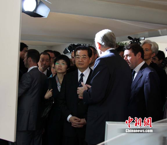 11月6日上午9點(diǎn)多,中國(guó)國(guó)家主席胡錦濤和夫人劉永清乘車前往位于尼斯以北卡羅斯生態(tài)技術(shù)園內(nèi)的施奈德電氣集團(tuán)卡羅斯中心。這場(chǎng)參觀歷時(shí)約40分鐘,是胡錦濤此次法國(guó)之行的最后一場(chǎng)活動(dòng)。圖為胡錦濤聽取對(duì)方介紹情況。