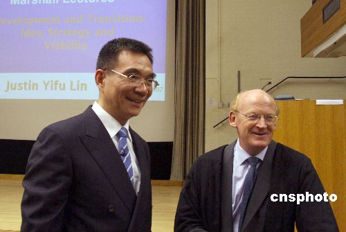 世界頂級經濟學講壇之一的劍橋大學“馬歇爾講座”每年邀請一位世界著名經濟學家擔任主講人,北京大學中國經濟研究中心林毅夫教授作為首個中國學者今年應邀主講。中新社發(fā) 李鵬 攝
