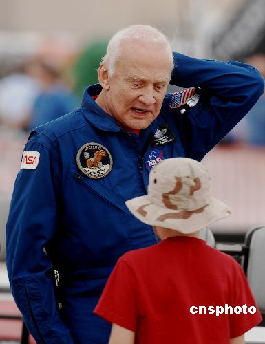 美國(guó)第二位登上月球的宇航員奧爾德林十一月在內(nèi)華達(dá)州的內(nèi)利斯基地出席紀(jì)念空軍成立六十年盛會(huì)。中新社發(fā) 賈國(guó)榮 攝