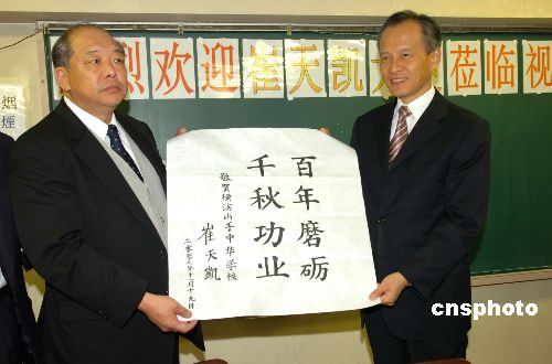 11月19日上午,上任伊始的中國駐日大使崔天凱專程來到日本橫濱山手中華學(xué)校,看望這座具有百年歷史的僑校師生,中國駐日使館公使孔鉉佑、中國駐日使館總領(lǐng)事于淑媛陪同。崔天凱大使一行受到該校師生的熱烈歡迎。中新社發(fā) 滕劍峰 攝