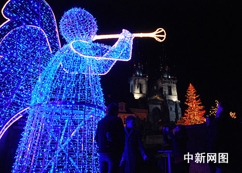 當(dāng)?shù)貢r間12月1日,捷克首都布拉格老場廣場舉行傳統(tǒng)的圣誕燈火亮燈和圣誕集市開張儀式。在大約12000名游客的歡呼聲中,布拉格市長貝姆啟動開關(guān),胡斯塑像旁邊22米高的圣誕樹由下到上開始放射出燦爛光芒。今年新增的矗立在集市四角的4座長著翅膀吹號的天使燈火塑像讓游客們特別感興趣。黃頻 攝