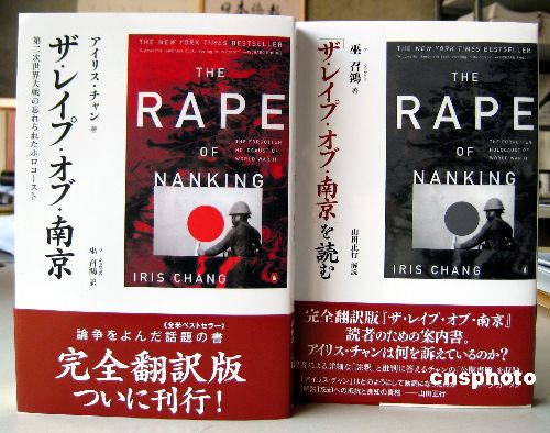 在“南京大屠殺”事件70周年之際,美籍華裔女作家張純?nèi)绲臍v史著作《南京大屠殺》日文譯本終于在日本出版發(fā)行。該書由在日華僑巫召鴻翻譯、日本同時(shí)代社出版。除了張純?nèi)缭g本以外,《解讀<南京大屠殺>》同時(shí)出版,詳細(xì)介紹了《南京大屠殺》日文版歷經(jīng)10年才得以面世的經(jīng)過。中新社發(fā) 段躍中 攝