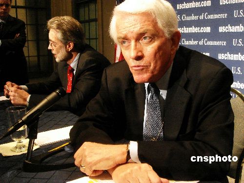 盡管次貸風(fēng)暴和油價(jià)上漲對(duì)美國(guó)經(jīng)濟(jì)形成傷害,但美國(guó)商會(huì)會(huì)長(zhǎng)兼首席執(zhí)行官托馬斯·多諾霍八日上午在華盛頓舉行的美國(guó)商會(huì)年度記者會(huì)上預(yù)言,今年美國(guó)經(jīng)濟(jì)將緩慢增長(zhǎng)。他認(rèn)為,美國(guó)經(jīng)濟(jì)“也許在今年下半年會(huì)恢復(fù)以往的增長(zhǎng)勢(shì)頭”。圖為托馬斯·多諾霍在接受記者提問(wèn)。中新社發(fā) 邱江波 攝