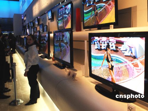 一月上旬,當今超薄型高清晰度彩色電視機在美國拉斯維加斯世界最大的消費電子產(chǎn)品展上傳達信息:它們將是裝飾墻壁的電子生活藝術(shù)品。中新社發(fā) 賈國榮 攝