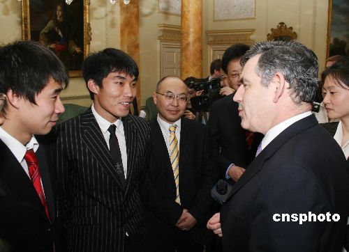 當(dāng)?shù)貢r(shí)間1月14日下午,即將訪華的英國(guó)首相布朗在唐寧街十號(hào)會(huì)見(jiàn)旅英華人華僑、中資機(jī)構(gòu)負(fù)責(zé)人、留學(xué)生等華人杰出代表。中國(guó)足球明星鄭智和董方卓作為受邀代表一同出席。中新社發(fā) 李鵬 攝