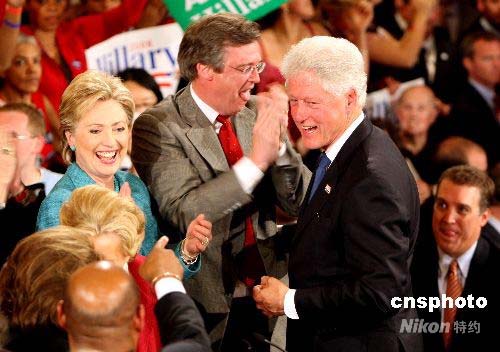 克林頓慶祝妻子希拉里贏得賓州初選勝利