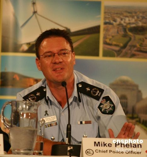 圖為堪培拉警方負(fù)責(zé)人邁克·菲蘭在23日的新聞發(fā)布會(huì)上接受記者采訪。