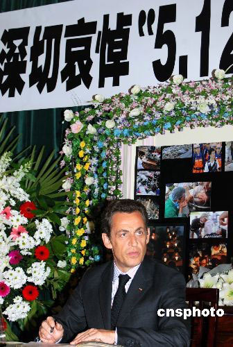 薩科奇前往中國駐法大使館悼念中國地震遇難者