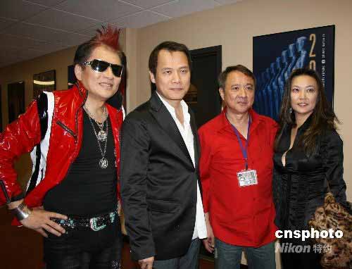 當?shù)貢r間5月24日,著名歌星羅大佑、高凌風抵達美國洛杉磯雪蘭大劇場,參加四川賑災募捐演唱會。中新社發(fā) 金立冬 攝