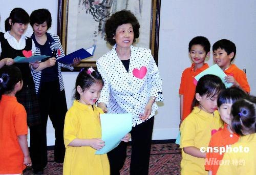 就像往年的“六一”一樣,中國駐美使館今年也發(fā)給隨任子女一件“禮物”。不過,今年的禮物很特別,這是孩子們參加使館學校向災區(qū)捐款的《捐款證書》,孩子們收到這份禮物非常高興,因為這讓他們看到了自己為災區(qū)小朋友奉獻的那份愛心。中新社發(fā) 邱江波 攝