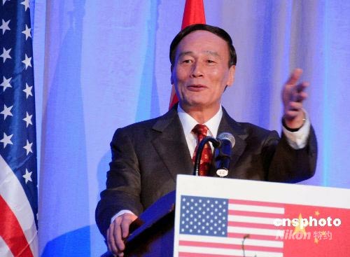 華盛頓當(dāng)?shù)貢r(shí)間六月十八日晚,中國(guó)國(guó)家主席胡錦濤的特別代表、國(guó)務(wù)院副總理王岐山,在與美國(guó)政商界的晚宴上發(fā)表四十分鐘的即席脫稿演講,他高瞻遠(yuǎn)矚、睿智幽默、形象生動(dòng)的演講讓與會(huì)者折服。中新社發(fā) 邱江波 攝