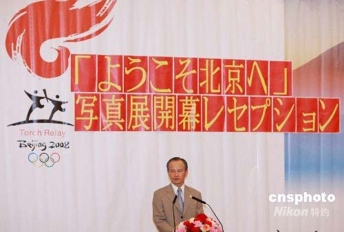 7月23日中午,由中國駐日使館主辦的《北京歡迎你》圖片展在東京開幕。此次共展出94幅奧運(yùn)題材攝影作品,從古都風(fēng)貌、場館建設(shè)、喜迎奧運(yùn)等多個側(cè)面全面展示了中國為舉辦一屆成功奧運(yùn)會所取得的杰出成就。圖為中國駐日大使崔天凱在圖片展開幕式上致詞。中新社發(fā) 朱沿華 攝