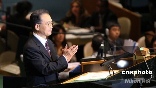圖:溫家寶在第六十三屆聯(lián)大發(fā)表演講