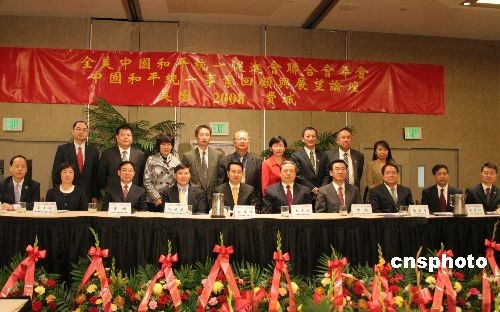 圖為全美中國(guó)和平統(tǒng)一促進(jìn)會(huì)成員與中國(guó)駐紐約總領(lǐng)事彭克玉、中國(guó)駐美大使館公使劉光源等合影留念。